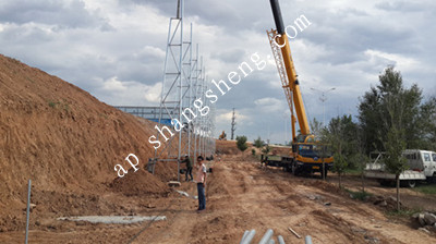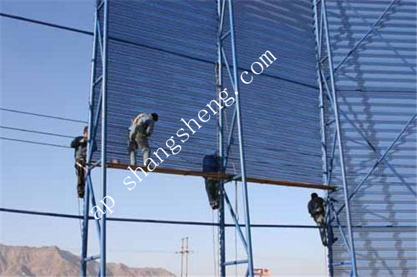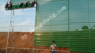 防風抑塵網長度最長不得超過6.15米(網長越長,鋼結構的距離越遠,擋風效果越差),峰高7.5cm防風效果最佳,此為國家科學院風洞試驗得出的結論,由于各地所處地理環境不同,氣象條件不同,也應采用不同規格型號的擋風抑塵墻才能達到有效防風抑塵的效果。需經專業人員設計,才能保證擋風抑塵墻的安全性與環保效果。